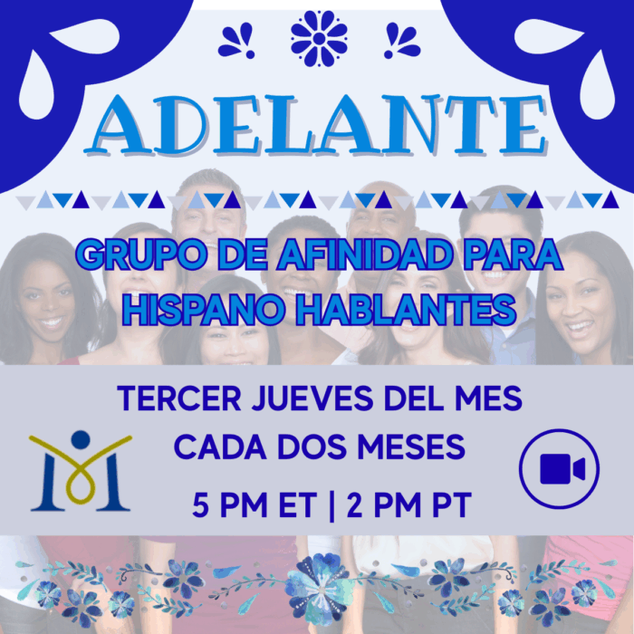 ¡TMA Adelante! ¡Grupo de afinidad es el primer grupo de afinidad de TMA en un idioma distinto al inglés! Adelante en español significa “avanzar”, como continúan haciendo muchos que viven con miositis y sus cuidadores a pesar de la enfermedad crónica. Hispanohablantes de todo el mundo se reúnen varias veces al año. Se reúne cada dos meses el tercer jueves del mes. Regístrate aquí.