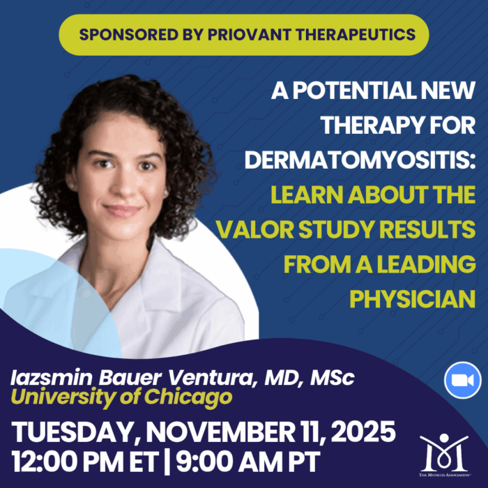 Join TMA for our next Myositis Research Insights webinar, featuring Dr. Erin Wilfong, a leading expert in autoimmune muscle disease. Dr. Wilfong will share updates from her latest research and discuss how these findings may impact the understanding and treatment of myositis. Don’t miss this opportunity to hear directly from one of the scientists advancing myositis research and to ask your questions during a live Q&A.