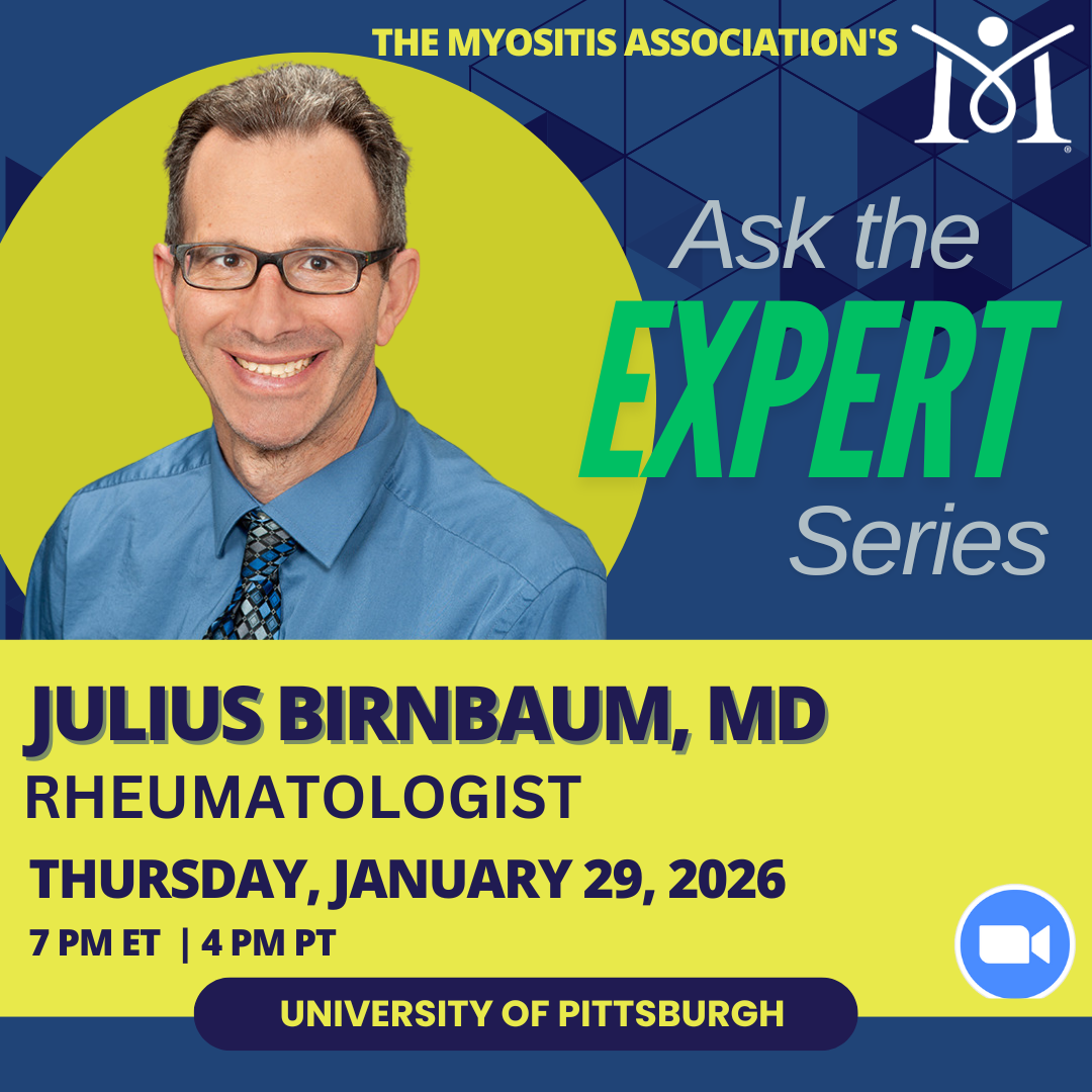 TMA’s Ask the Expert series is our most popular webinar series. It provides an opportunity for our community to get answers to their burning questions from an expert who likely has more knowledge than their doctor. This is also a chance for the community to meet a member of TMA’s expert Medical Advisory Board or another distinguished member of the myositis medical community.