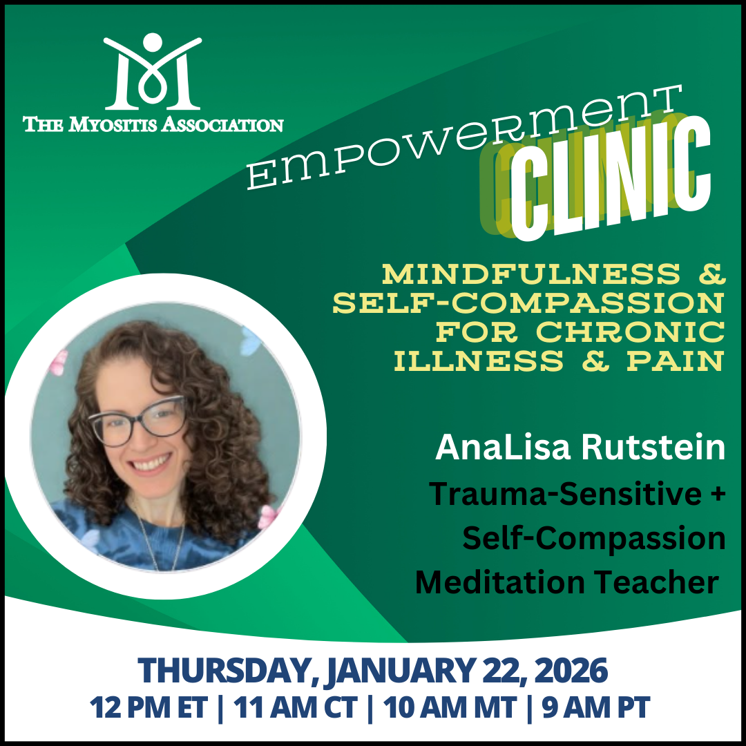 In this 60-minute session, we will define and explore what Mindfulness and Self-Compassion are and how they can reduce pain and discomfort, reduce stress, and enhance our ability to live a life beyond simply struggling with our illness and pain.  The workshop will include an overview of the subject matter, guided meditation, and time for Q&A.